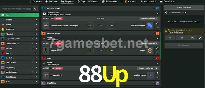 A aposta 88Up oferece aos jogadores a experiência mais conveniente de apostas em eSports!